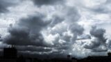 黒い雲に覆われた都市の空